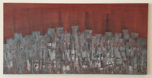 140 x 80 Acryl gespachtelt auf Leinwand . sehr abstrakt aber sieht in der richtigen Beleuchtung super aus …